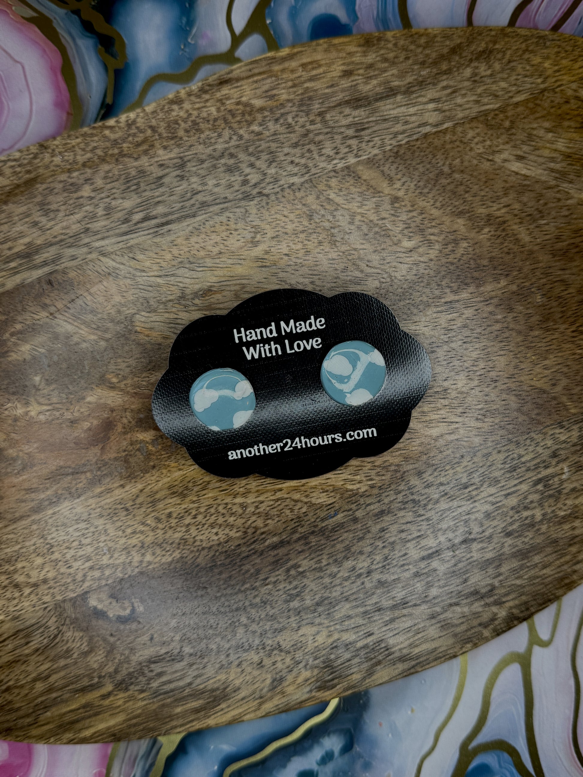 Cloudy Sky Earrings | Polymer Clay Studs & Dangles with Resin Finish | Dreamy Blue Jewelry