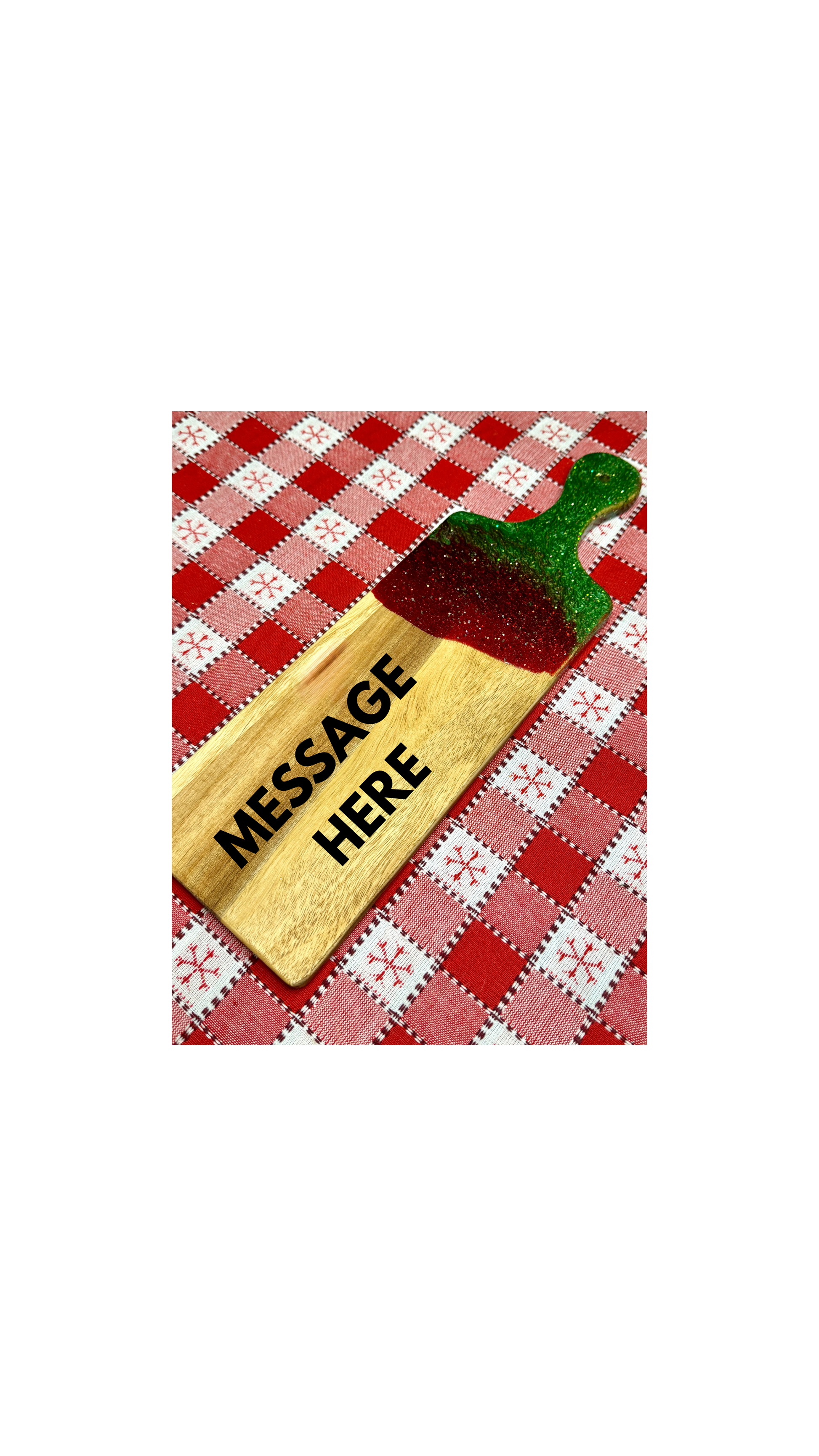 Elevate your kitchen or holiday hosting with our stunning handcrafted cutting boards, available in 16 x 5 and 16 x 10 sizes. Each board is made from beautiful natural wood and finished with a hand-poured resin accent, creating a unique blend of rustic charm and festive color.