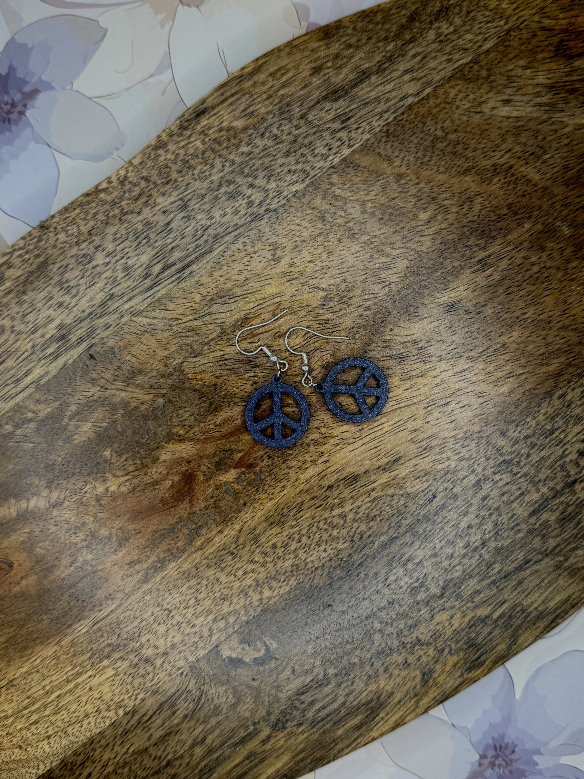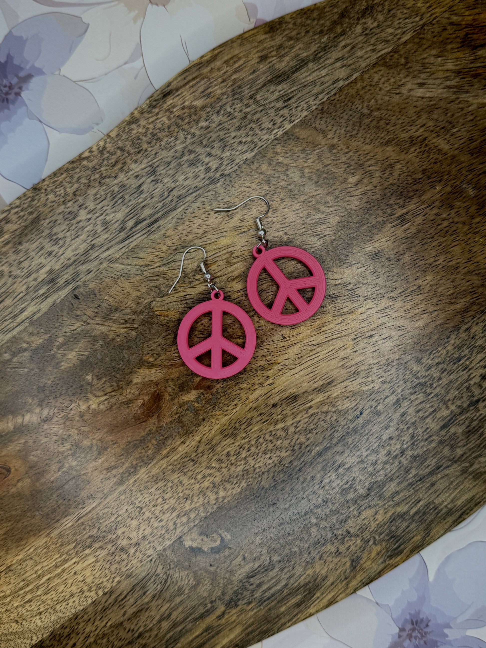 Peace Sign Earrings | 3D Printed Retro Dangles | Colorful Summer Jewelry in Two Sizes