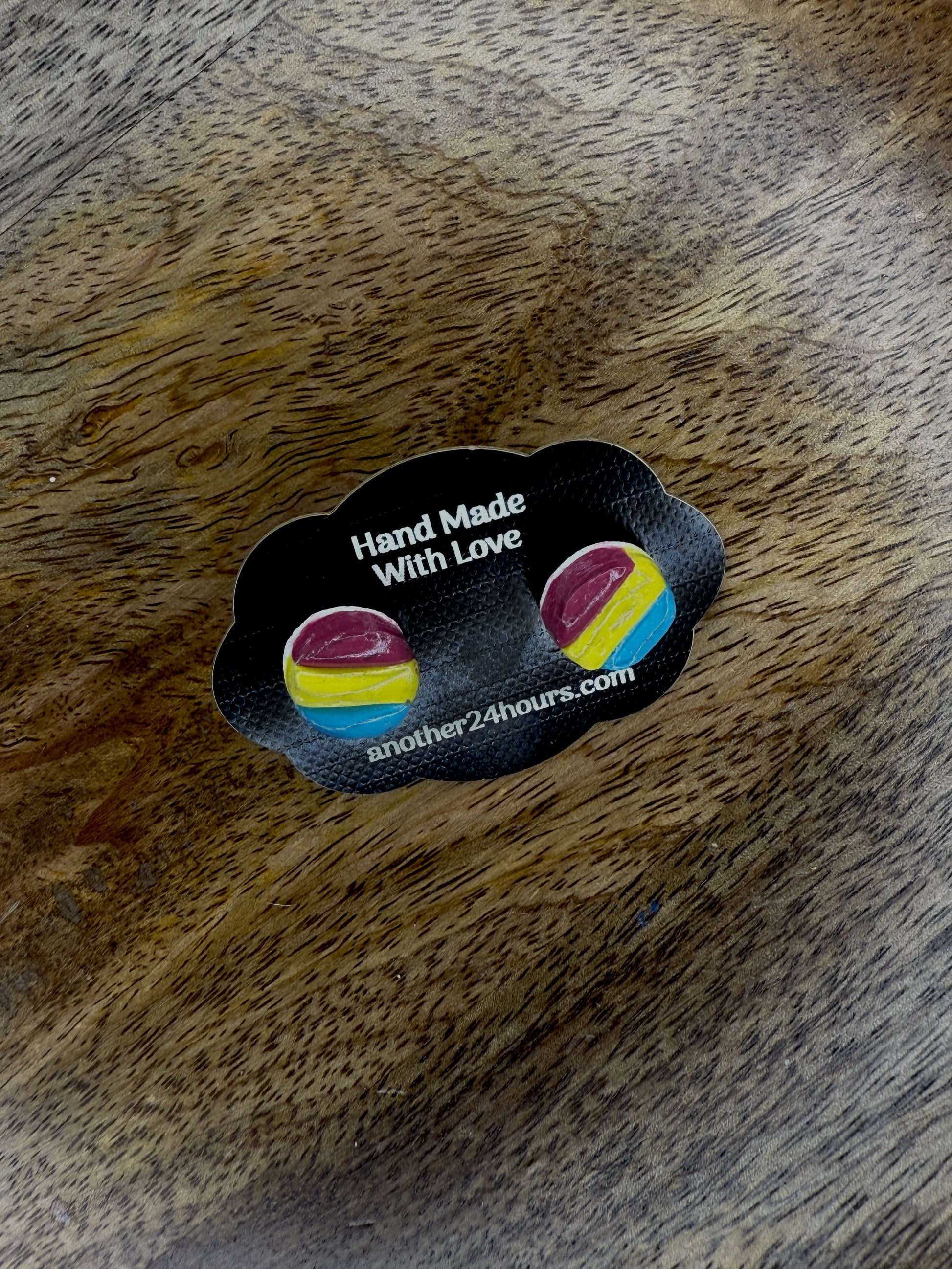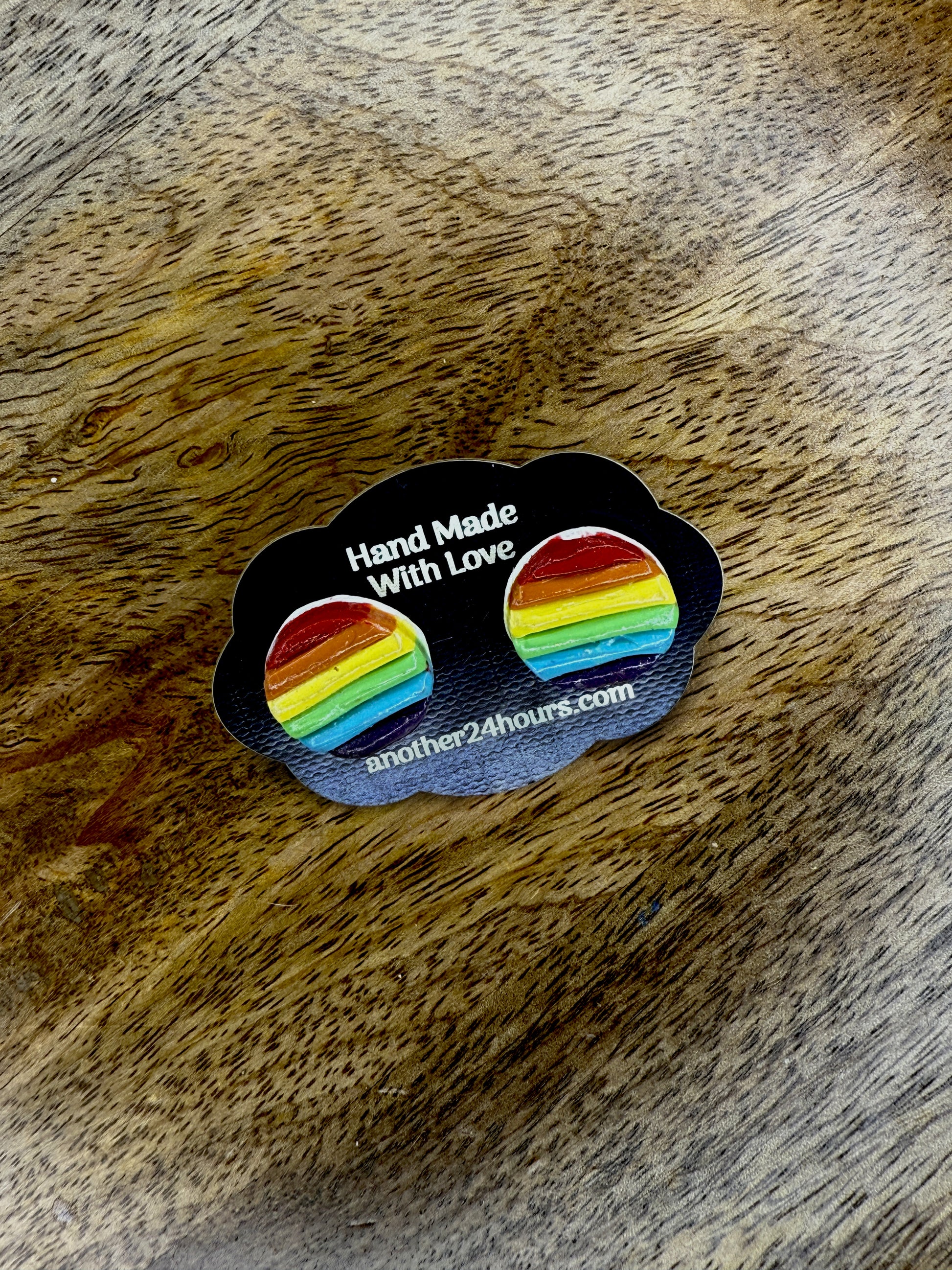 Show your true colors with these handmade polymer clay Pride flag stud earrings — small in size but full of meaning. Each pair is carefully crafted to celebrate your unique identity and style. Lightweight and durable, they’re perfect for everyday wear or a thoughtful gift for someone who lives with pride.