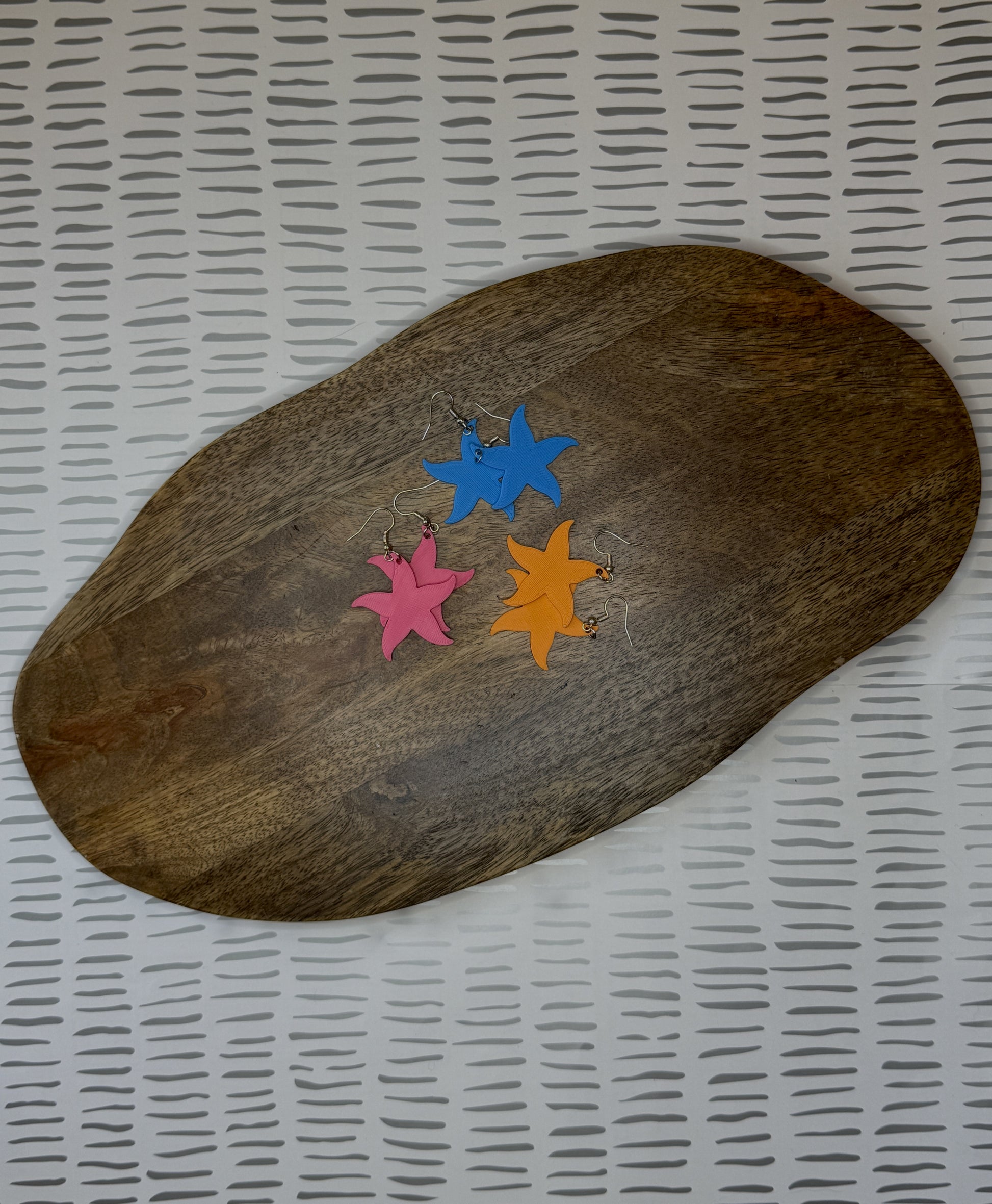 Channel sandy toes and saltwater sparkle with these playful starfish earrings — a cheerful nod to tidepools, beach days, and breezy summer energy. Lightweight and bold, each pair is 3D printed from durable PLA plastic and available in three vibrant colorways: sunset orange, ocean blue, or bubblegum pink.