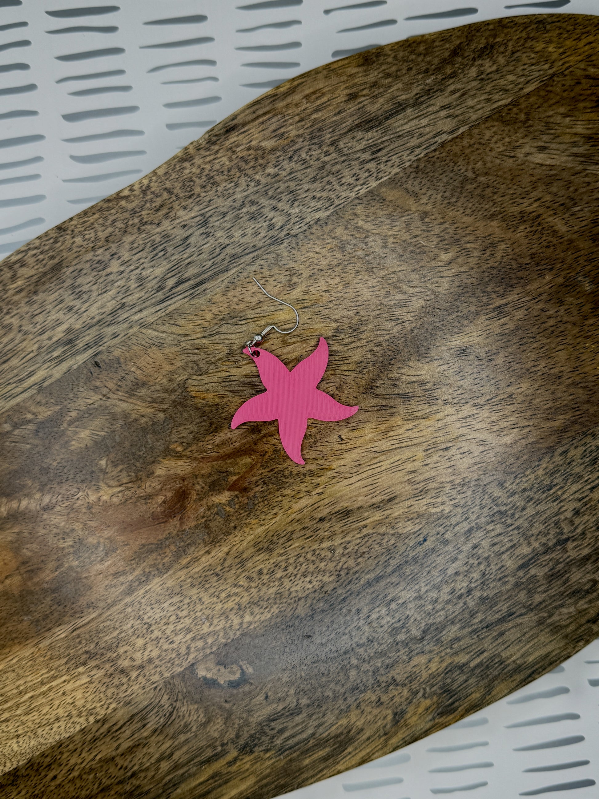 Starfish Earrings | 3D Printed Ocean Jewelry | Coastal Statement Earrings in Orange, Blue, or Pink