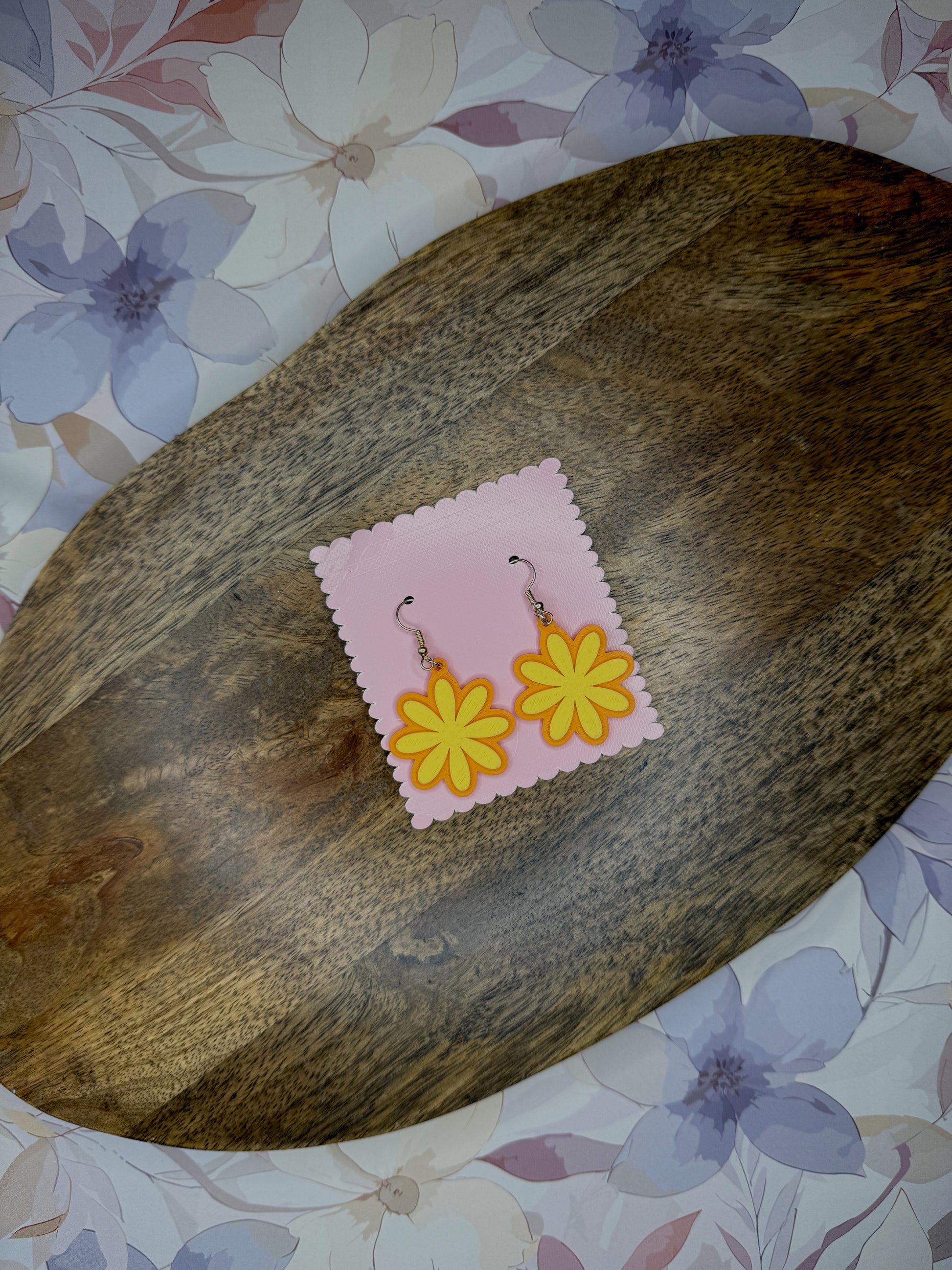 Sunshine Flower Earrings | 3D Printed Summer Dangles | Bright Yellow & Orange Floral Jewelry